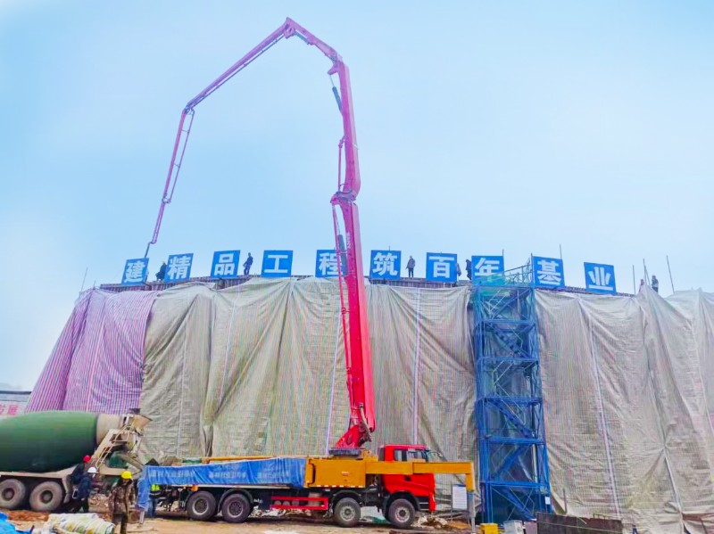 在施工現(xiàn)場,多臺大型機械同時運轉(zhuǎn),作業(yè)人員配合默契,工程建設(shè)如火如荼,混凝土隨著輸送泵的節(jié)奏徐徐上升入模開始澆筑?,F(xiàn)澆段長度達(dá)145米,高13米到15米,寬24米到32米,現(xiàn)澆連續(xù)箱梁澆筑C50混凝土3486方,本次澆筑1500方。