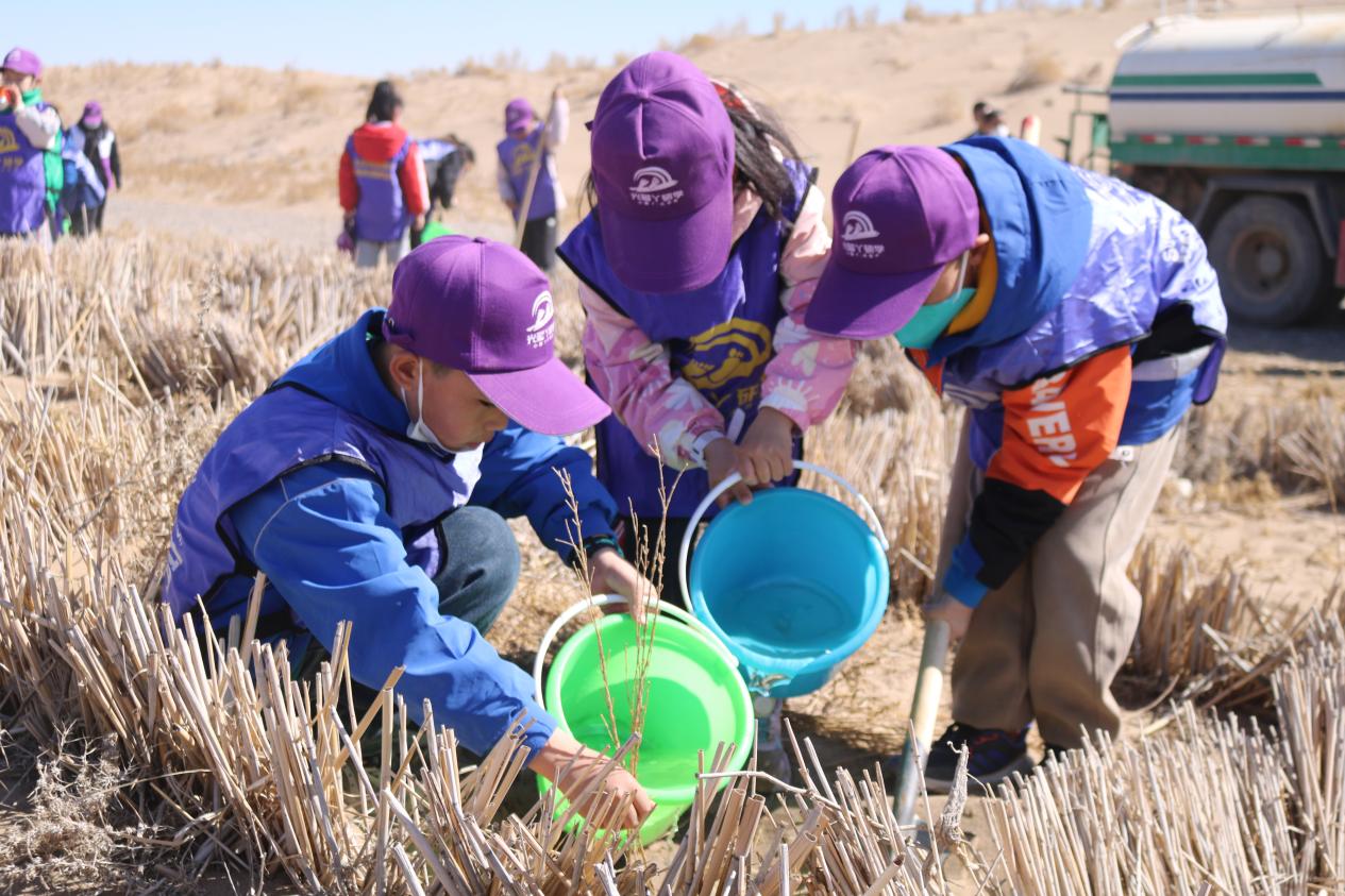 甘肅建投新能源公司沙漠研學(xué)旅行基地舉辦“我與小樹共成長,爭做護(hù)綠小使者”主題研學(xué)活動