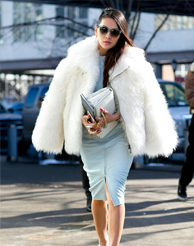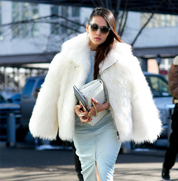 Instagram時(shí)尚伙伴關(guān)系負(fù)責(zé)人Eva Chen用簡約的粉色大衣搭配白色長款高領(lǐng)針織裙,輕松制造出層次感,絨毛裝飾的尖頭高跟鞋更具玩味。
