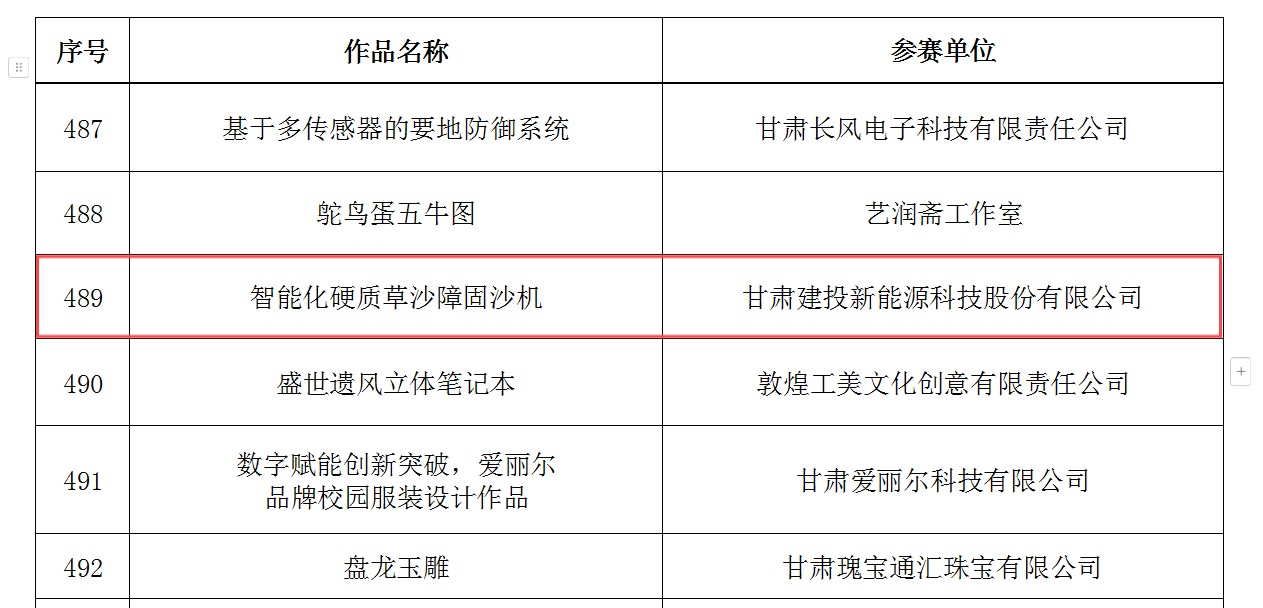 近日,《甘肅省第五屆“創(chuàng)新杯”工業(yè)設(shè)計大賽產(chǎn)品組復(fù)評入圍名單》于甘肅省“創(chuàng)新杯”工業(yè)設(shè)計大賽官網(wǎng)發(fā)布,共528件產(chǎn)品進入復(fù)評名單,甘肅建投新能源科技股份有限公司設(shè)計開發(fā)的工業(yè)新產(chǎn)品“智能化硬質(zhì)草沙障固沙機”榜上有名。