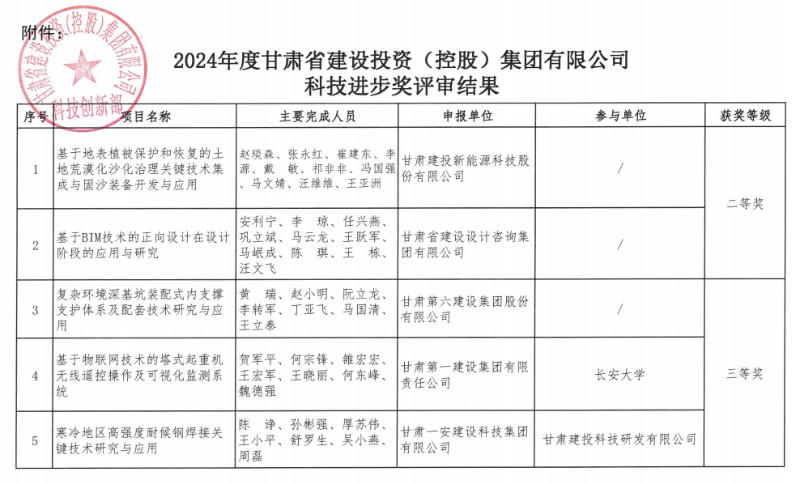 喜訊!我公司承擔(dān)的省科技重大專項(xiàng)科研項(xiàng)目榮獲2024年度甘肅建投科技進(jìn)步獎(jiǎng)二等獎(jiǎng)