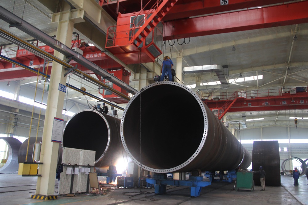 風電設(shè)備事業(yè)部迅速組建技術(shù)攻堅團隊,深入開展技術(shù)攻關(guān),成功構(gòu)建“工藝設(shè)計→方案落地→圖紙執(zhí)行→現(xiàn)場糾偏”完整技術(shù)鏈條,開展了《風電塔筒不同厚度母材焊工藝的研究與應(yīng)用》《一種新型風電塔筒卷制應(yīng)用技術(shù)》等項目的研究,實現(xiàn)技術(shù)方案的全面轉(zhuǎn)化,攻克多項生產(chǎn)技術(shù)工藝難題。