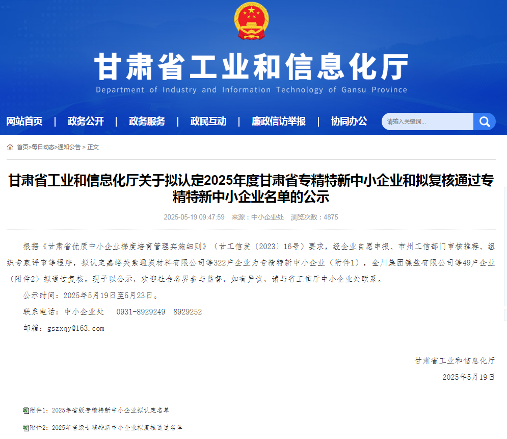 近日,甘肅省工業(yè)和信息化廳公布了2025年度“專精特新”中小企業(yè)認(rèn)定名單,甘肅建投新能源科技股份有限公司憑借在新能源領(lǐng)域的卓越表現(xiàn)和創(chuàng)新能力,成功獲評甘肅省“專精特新”優(yōu)勢企業(yè),這不僅是對公司過往成績的高度認(rèn)可,也為未來發(fā)展注入了強(qiáng)大動力。