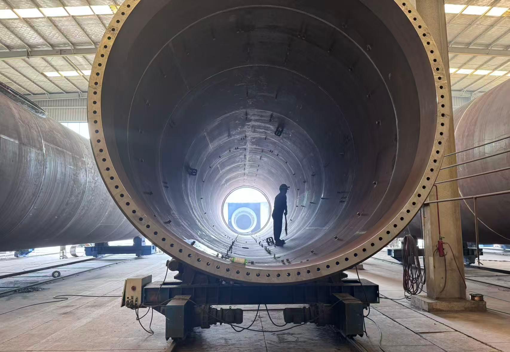 走進基地生產(chǎn)車間,映入眼簾的是一派協(xié)同作戰(zhàn)的繁忙場景:技術(shù)人員拿著圖紙與工人仔細核對尺寸,質(zhì)檢人員用專業(yè)儀器對每一處焊縫進行檢測,運輸人員則提前踏勘路線、協(xié)調(diào)物流資源,制定“驗收即發(fā)運”的銜接方案,確保合格塔筒能以最快速度奔赴風電項目現(xiàn)場。各環(huán)節(jié)無縫銜接、各崗位高效配合,凝聚成沖刺交付的強大合力。