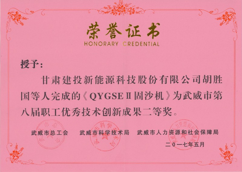 QYGSEII固沙機(jī)-武威市第八屆職工優(yōu)秀技術(shù)創(chuàng)新成果二等獎(jiǎng)