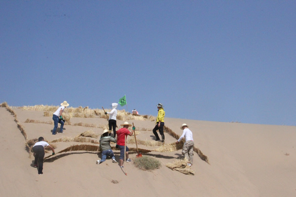 在沙漠基地員工的帶領(lǐng)幫助下,新員工們完成了90分鐘的人工固沙作業(yè),并現(xiàn)場參觀了機(jī)械固沙作業(yè)。通過實(shí)踐,大家一致認(rèn)識(shí)到了機(jī)械固沙的快捷性與高效性;對(duì)公司的治沙產(chǎn)業(yè)感到尤為自豪,更為身為建投人而驕傲。