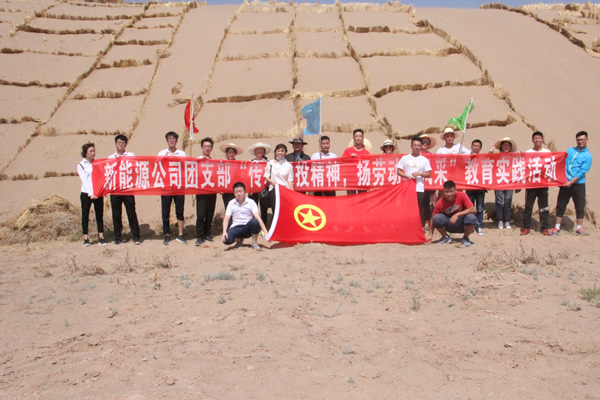 2018年7月31日,新能源公司團(tuán)支部舉行的以“傳承建投精神,揚(yáng)勞動(dòng)者風(fēng)采”為主題的新員工素質(zhì)拓展訓(xùn)練在公司沙漠基地進(jìn)行。此次活動(dòng)旨在通過理論學(xué)習(xí)、實(shí)踐活動(dòng),使新員工充分了解公司治沙產(chǎn)業(yè)的發(fā)展,了解荒漠化治理的重要性、認(rèn)識(shí)沙漠化的危害;同時(shí)希望通過此次素質(zhì)拓展訓(xùn)練,增進(jìn)新員工間的了解,消除陌生感,快速融入新能源公司這個(gè)大家庭中。