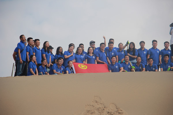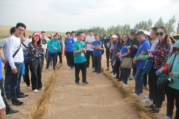 28日早上,參加“貢獻杯”聯(lián)賽的200余名青年代表離開蘭州,一路向西,穿過烏鞘嶺隧道,來到位于武威市的甘肅建投新能源科技股份有限公司全國荒漠化防治(機械治沙工程)實驗示范基地進行觀摩。在基地通過觀看企業(yè)介紹宣傳片、參觀沙產業(yè)展館、觀摩無人機實時采集沙漠信息,親身體驗人工鋪設草方格沙障、現(xiàn)場觀看固沙機作業(yè)演示等一系列活動,青年代表們對新能源公司的機械化防沙治沙有了一定的了解。尤其是在參與了人工治沙活動看到機械鋪設草方格演示后,青年代表們紛紛表示“用機器鋪不用再挖溝填埋草簾子了,減少了人工勞力,鋪設的很快也很結實”。對來自八省區(qū)青年代表提出的問題現(xiàn)場的技術員對其進行了一一講解,讓他們進一步了解機械化治沙。晚上舉行的篝火晚會進一步拉進了八省區(qū)青年代表之間的距離,互相交流學習,舉杯暢飲,圍圈起舞。煙花表演將晚會推向高潮,絢麗多彩的煙花引得青年歡呼聲此起彼伏,治沙基地的工作人員也是給來自八省區(qū)的青年們帶來不斷的驚喜,讓青年們感受到新能源公司的熱情和煙花下騰格里沙漠的壯美。在基地全體員工的精心準備和組織下,此次晚會活動圓滿完成。