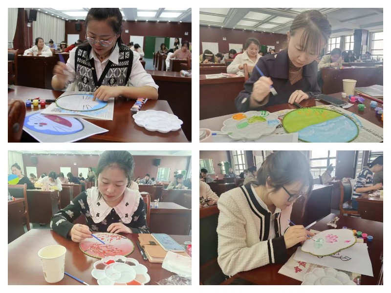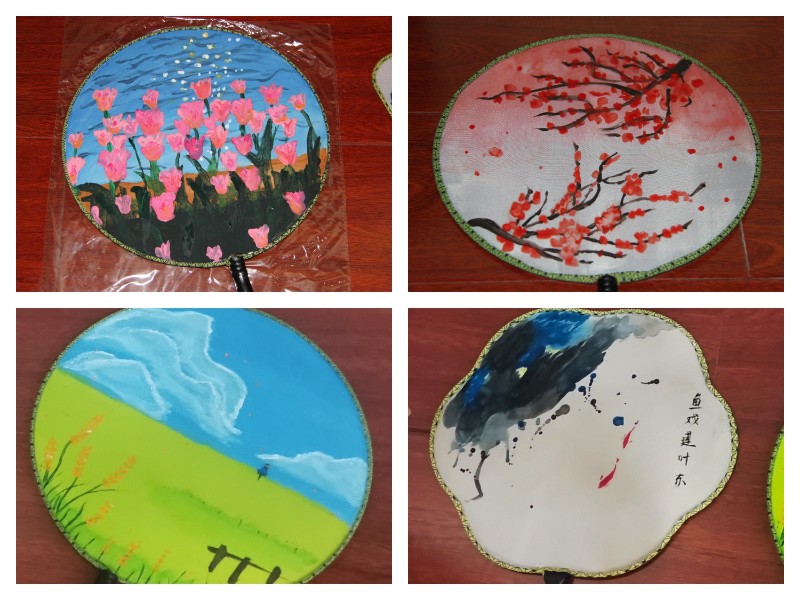 在團(tuán)扇活動(dòng)中,工作人員給大家介紹了團(tuán)扇的文化和發(fā)展歷史以及如何在團(tuán)扇上作畫(huà)的方法技巧,并向大家發(fā)放了制作材料,經(jīng)過(guò)一個(gè)小時(shí)的精心制作,各種色彩,各種圖案的團(tuán)扇精彩呈現(xiàn)。大家看著自己的作品,心中涌起了滿滿的成就感。