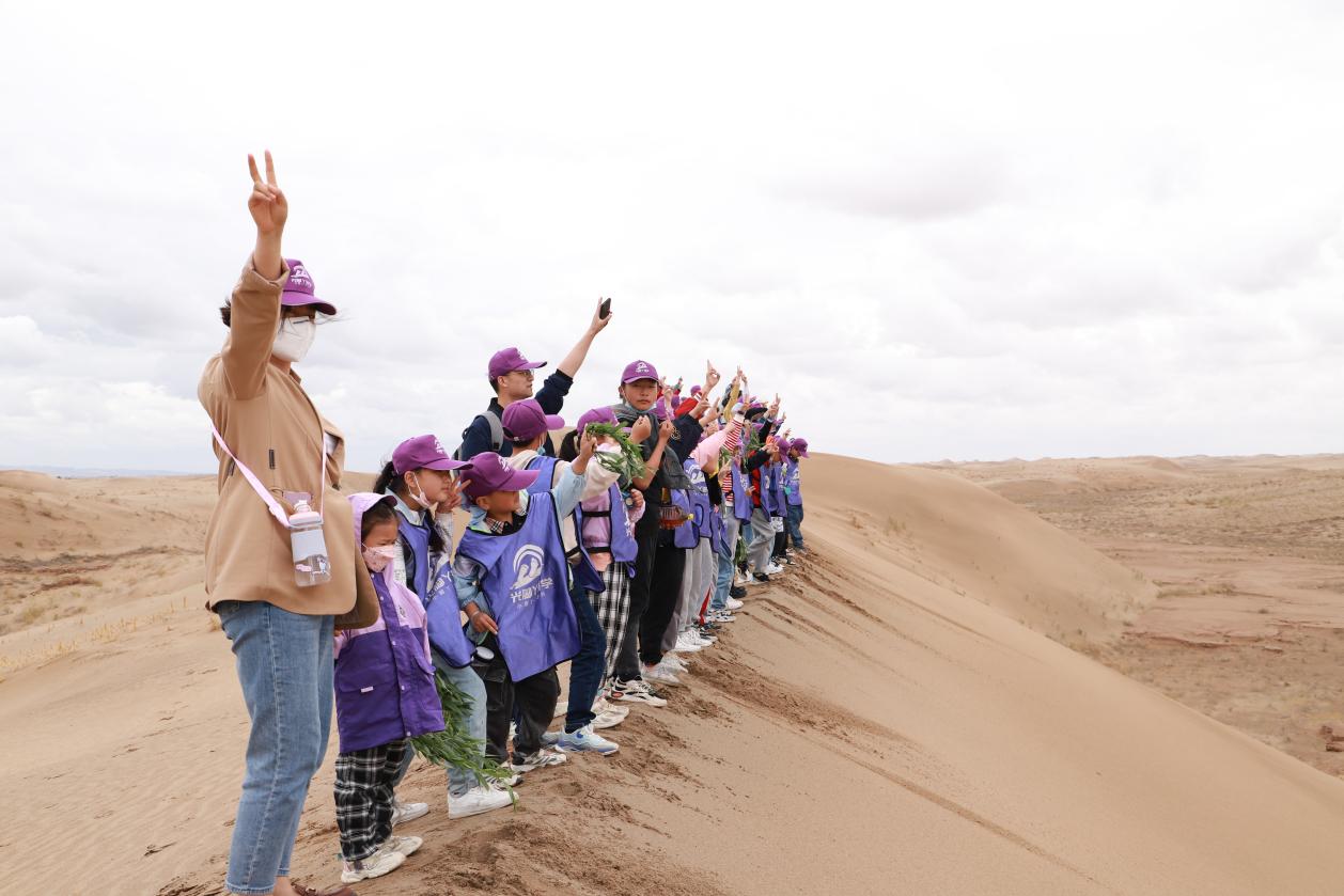 在沙漠徒步活動里,孩子們通過學(xué)習(xí)辨別沙生植物,捕捉沙生動物,學(xué)習(xí)沙漠求生技能等研學(xué)課程,進一步了解了沙漠的由來和危害,懂得了治沙的意義與目的。