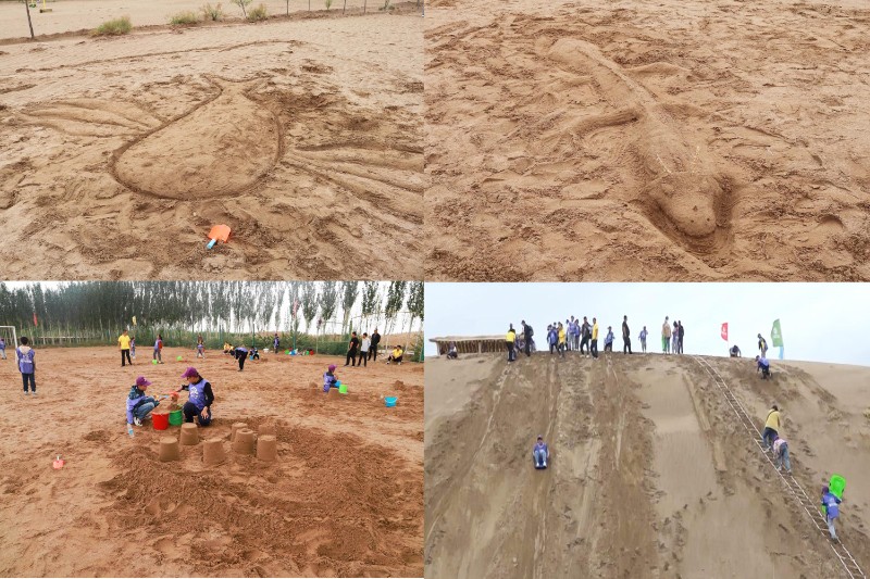 與此同時,制作沙堡、踢沙漠足球等游戲也在陽光運動場如火如荼的進行,孩子們臉上洋溢著燦爛的笑容,盡顯朝氣與活力。