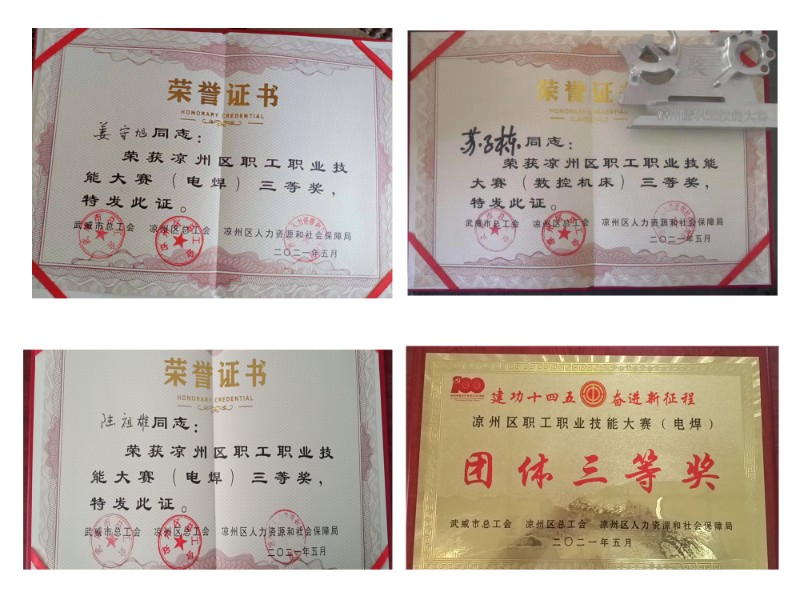 此次大賽分為電焊、叉車(chē)、數(shù)控機(jī)床、電工技能競(jìng)賽,其中焊接技能競(jìng)賽板塊設(shè)有管管對(duì)接多層焊接項(xiàng)目,要求參賽選手在三十分鐘內(nèi)使用二氧化碳?xì)怏w保護(hù)焊,焊接位置水平對(duì)接轉(zhuǎn)動(dòng)多層焊,經(jīng)過(guò)監(jiān)考裁判和評(píng)委會(huì)專(zhuān)業(yè)評(píng)判,新能源公司陸祖雄、姜守旭兩位同志榮獲涼州區(qū)職工職業(yè)技能大賽(電焊)三等獎(jiǎng),陸祖雄、姜守旭、楊碩三位同志榮獲涼州區(qū)職工職業(yè)技能大賽(電焊)團(tuán)體三等獎(jiǎng)。此外,在數(shù)控機(jī)床競(jìng)賽板塊,我公司蘇子棟同志榮獲涼州區(qū)職工職業(yè)技能大賽(數(shù)控機(jī)床)三等獎(jiǎng)。下午,主辦方為獲獎(jiǎng)同志頒發(fā)榮譽(yù)證書(shū),至此,此次大賽圓滿(mǎn)結(jié)束。