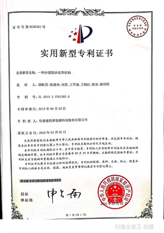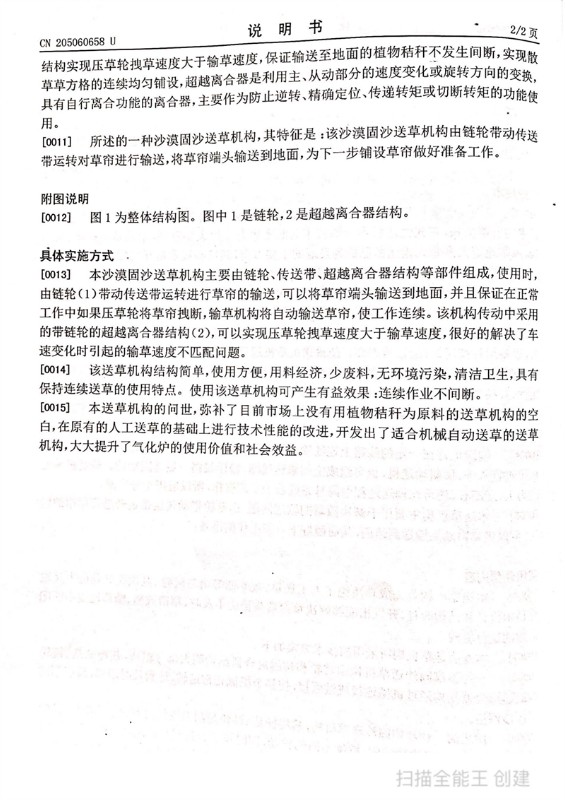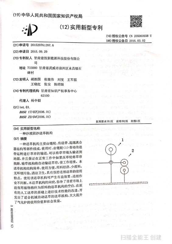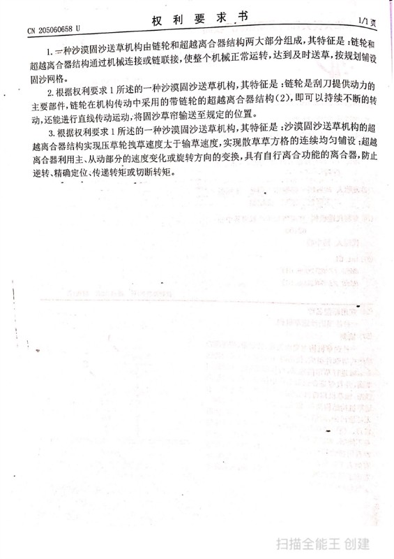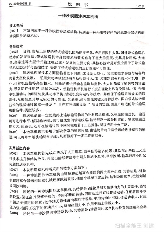 【實(shí)用新型專利】一種沙漠固沙送草機(jī)構(gòu)