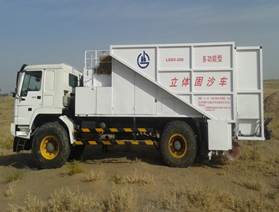 甘肅建投研發(fā)的“多功能立體固沙機(jī)”,是世界首臺機(jī)械化治沙機(jī),處于國際領(lǐng)先水平,擁有11項(xiàng)實(shí)用新型技術(shù)及發(fā)明專利,具有自主知識產(chǎn)權(quán)。立體固沙車將稻草在沙漠表面鋪設(shè)成1×1m、2×2m等不同規(guī)格的草方格,草方格規(guī)格可根據(jù)沙漠地形、風(fēng)向進(jìn)行靈活調(diào)整。麥草插入沙地,增加沙漠表面的粗糙度,消減風(fēng)力,阻止流沙移動,截留雨水,防風(fēng)固沙作用非常明顯,比人工固沙的質(zhì)量要高、效果更好。